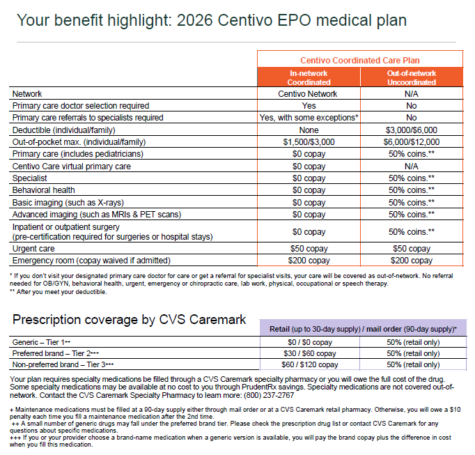 When you follow the plan rules, most of your care is covered at 100%. For urgent and emergency room care, you’ll have set copays. That means you’ll know what you owe – if anything – before you go to the doctor.